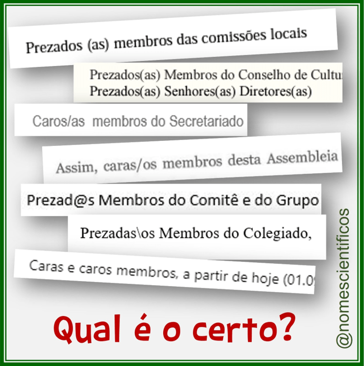 Enfim, todos os recortes da figura desta postagem estão com grafia gramaticalmente errada. Pela norma-padrão, só são considerados adequados ‘prezados membros’ e ‘caros membros’, o que facilitaria tudo e dispensaria a produção deste texto aqui.